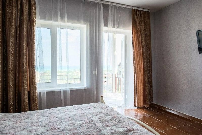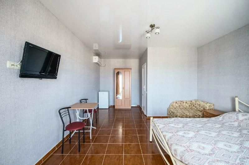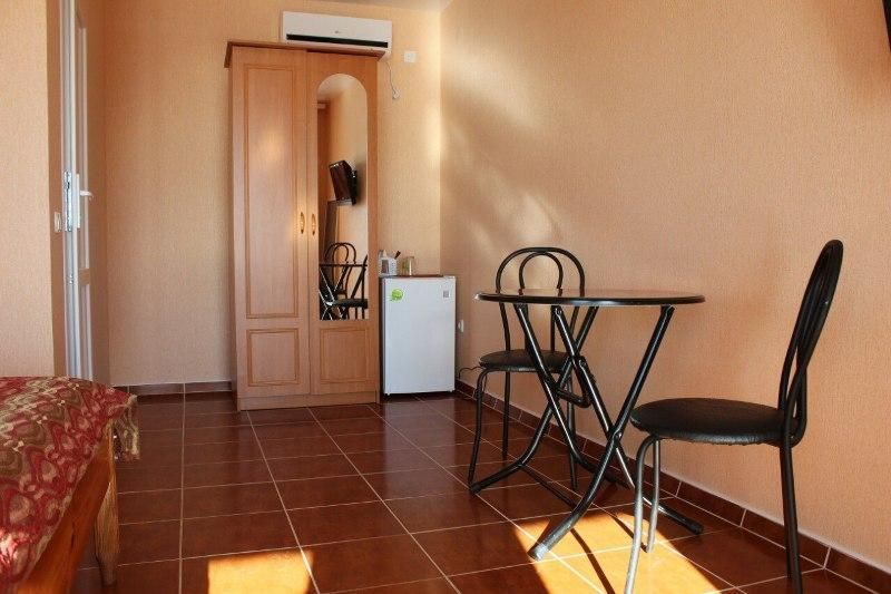 СТАНДАРТ 20 кв.м, двуспальная кровать, вид: на море, горы. В номере: кресло-кровать, шкаф, стулья, прикроватные тумбочки, стол, зеркало, обеденная зона, а также кондиционер, телевизор, кабельное ТВ, холодильник